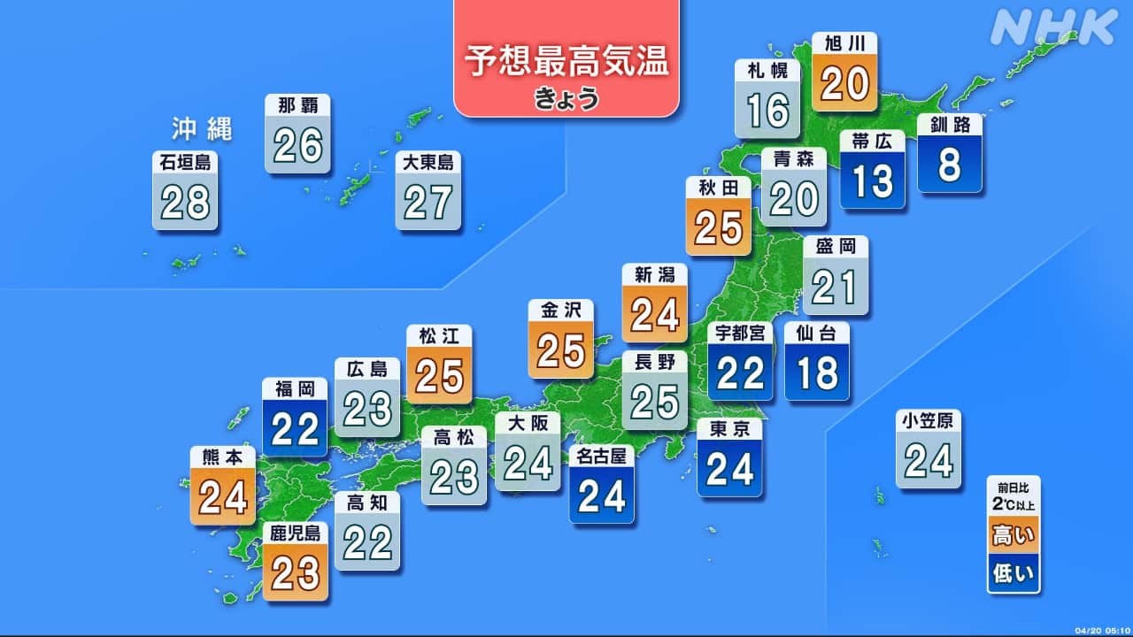 各地で気温上昇 広い範囲で夏日に 体調管理に注意を