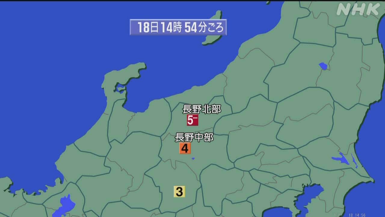 【地震速報】長野県北部で震度5弱(14:54)
