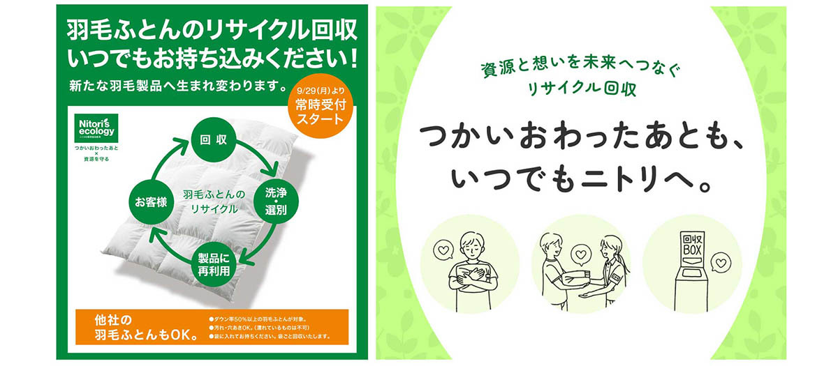 ニトリ、不要の羽毛布団回収を常時受付 メーカー不問