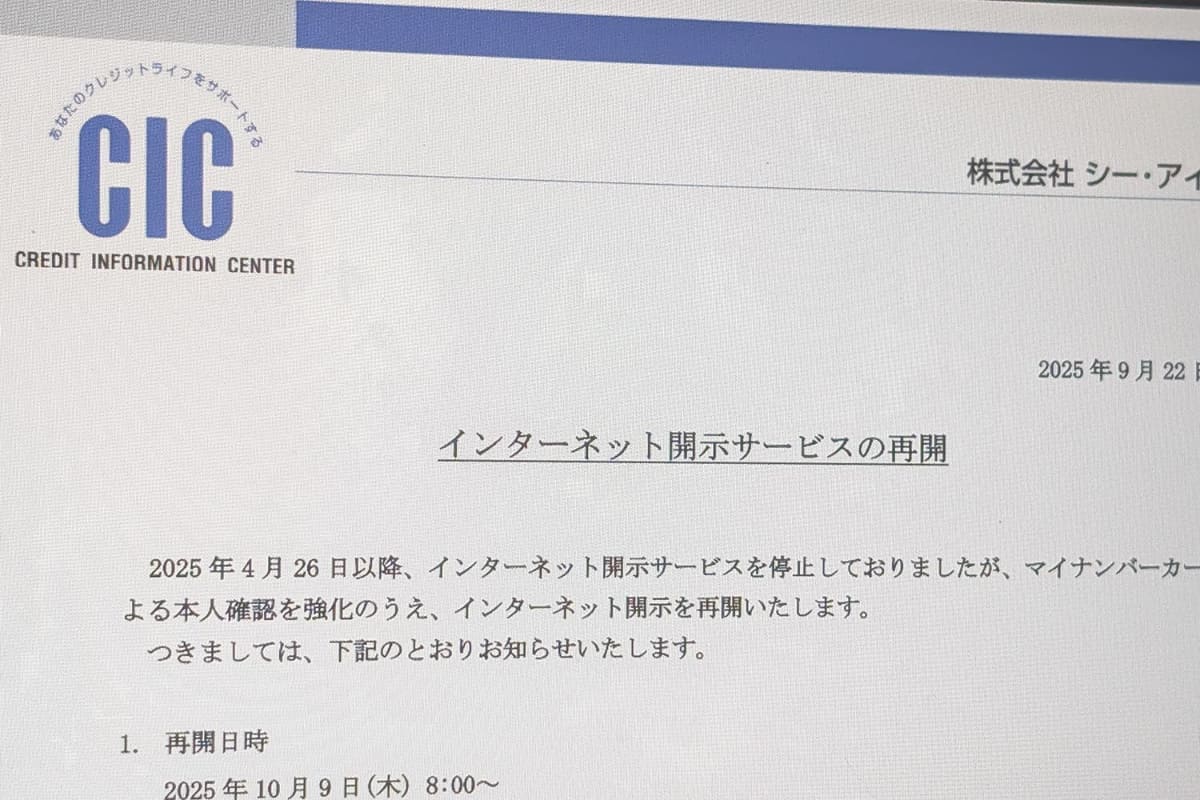 CIC、10月9日からインターネット開示再開 マイナカードの本人確認必須化