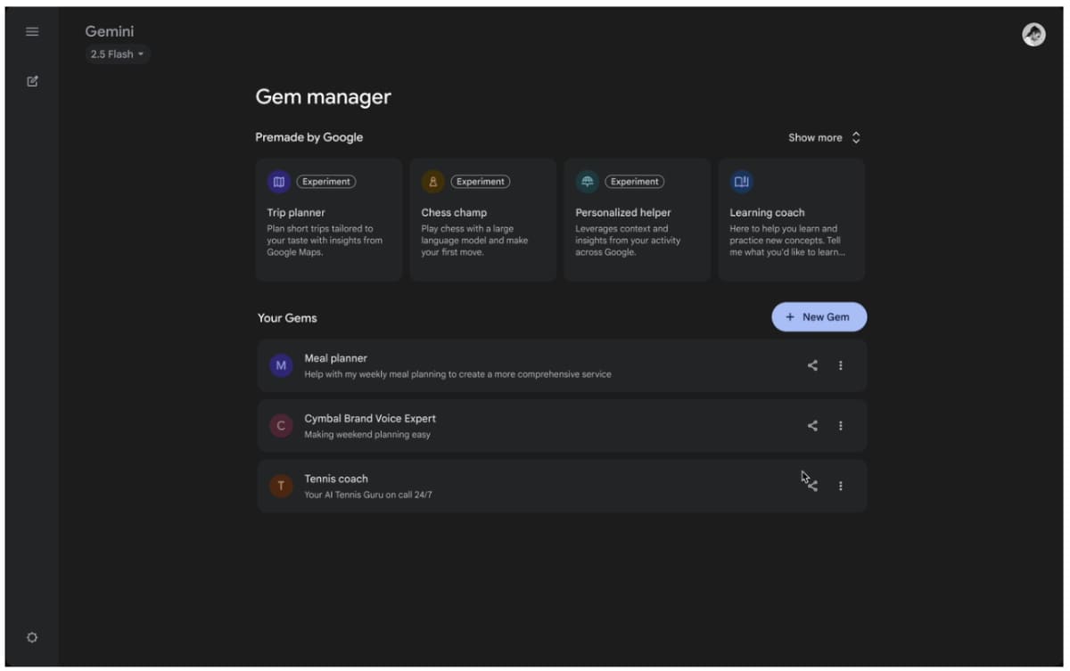 Geminiのカスタムアプリ「Gems」が共有可能に