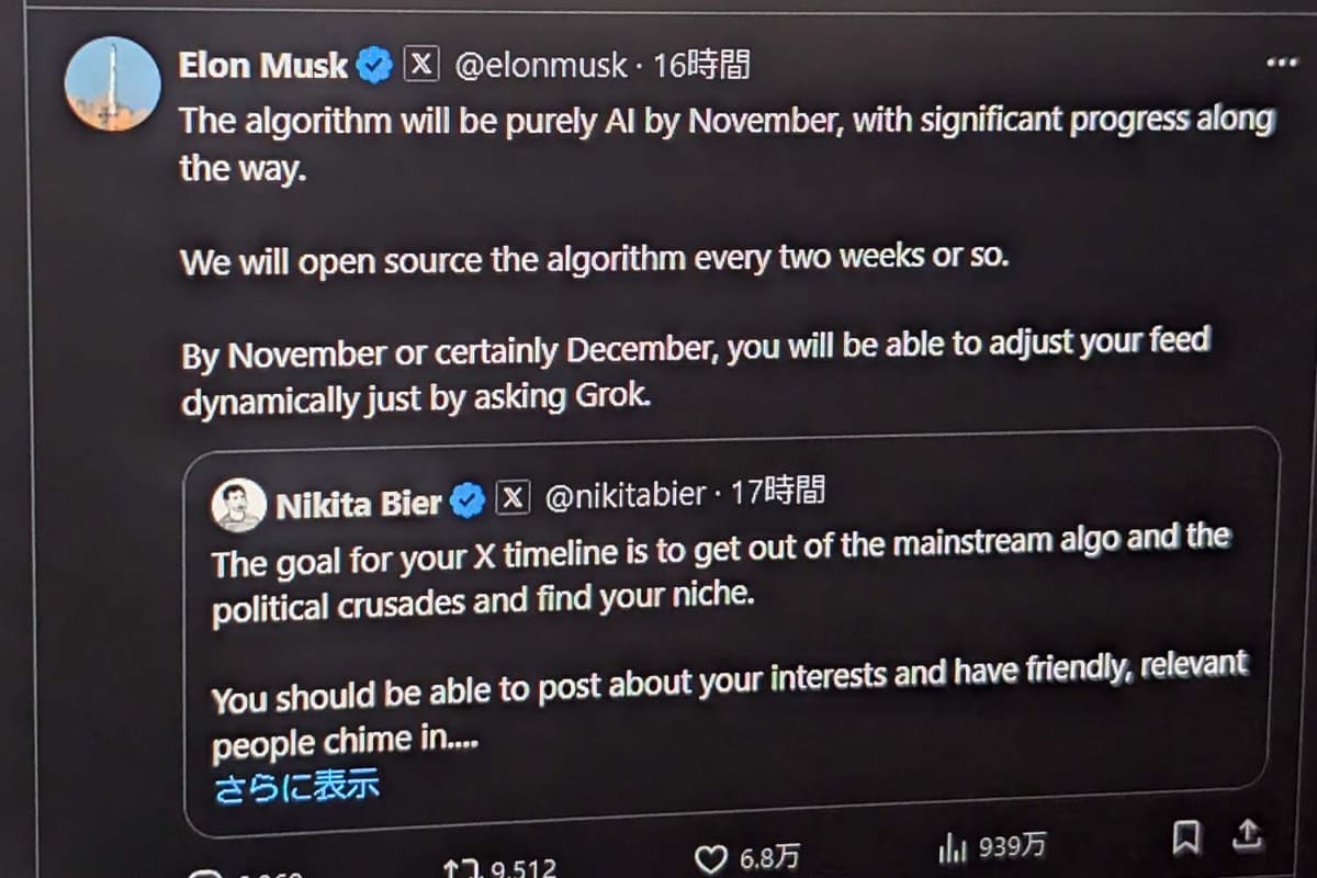 X、Grokに頼んでフィードを動的に調整 11月に実現へ