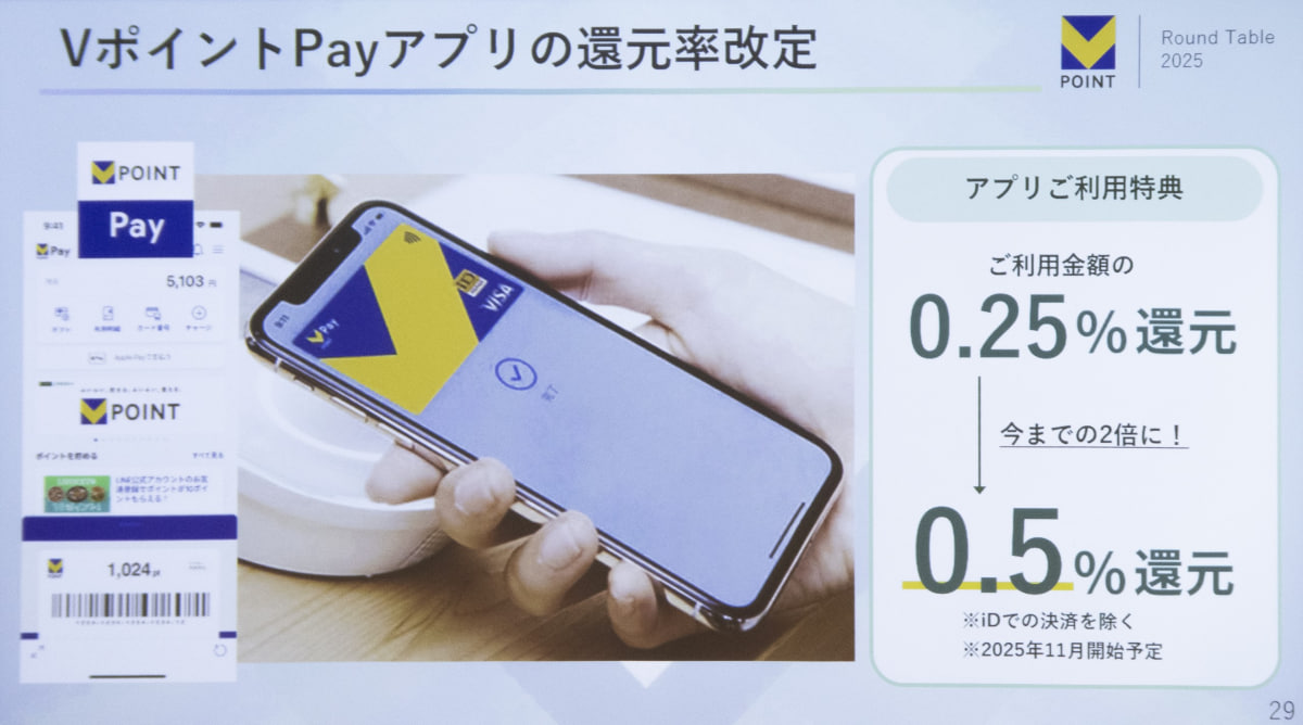VポイントPay、11月から還元率0.5% チャージ手数料も無料に